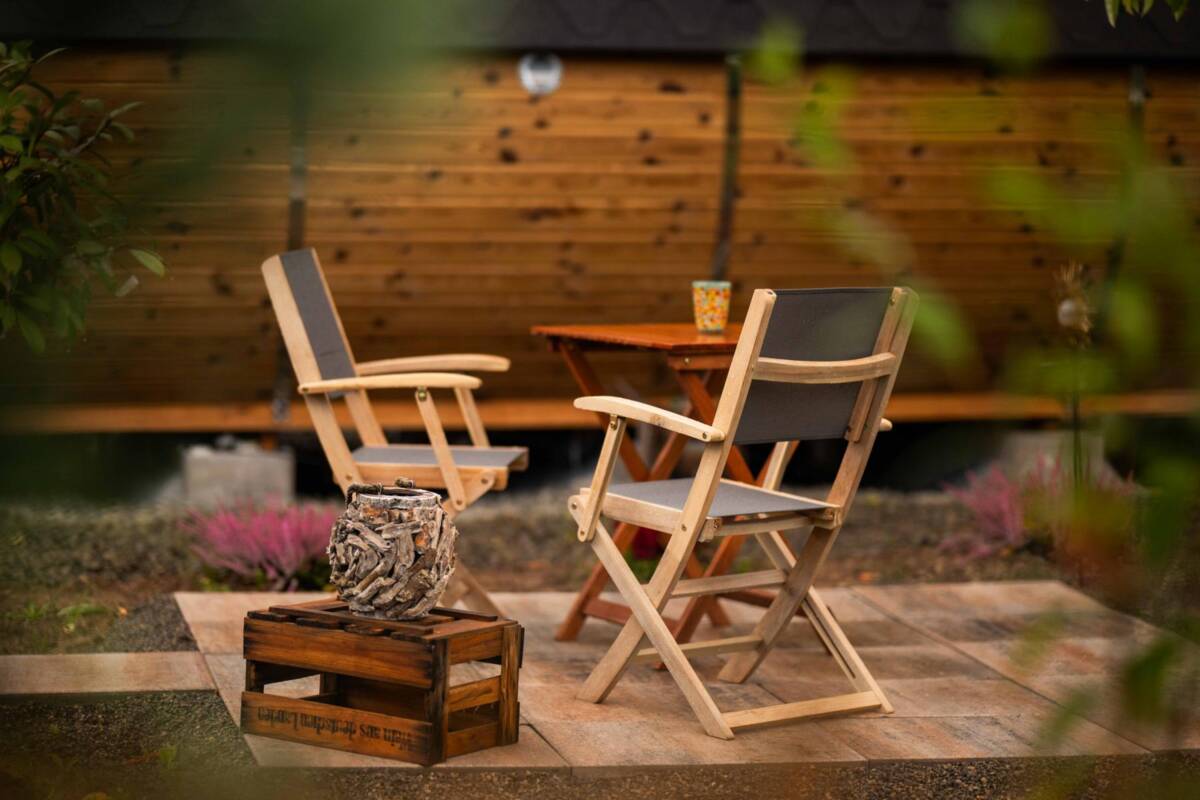 • Terrasse mit Tisch und Stühlen